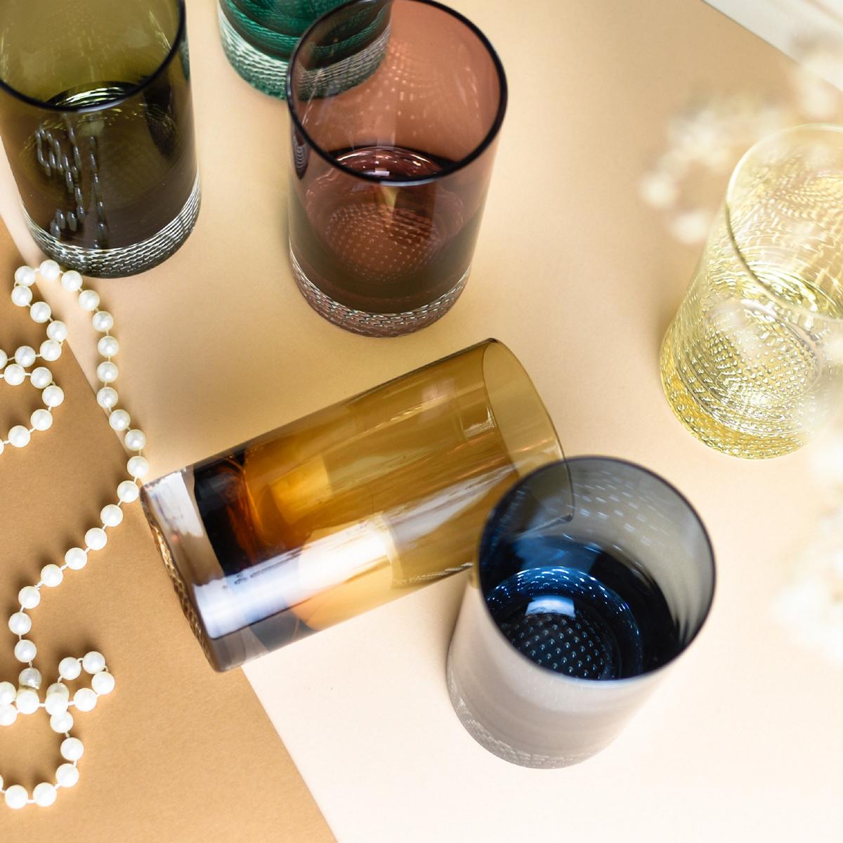 - Praktische Maße für komfortables Trinkerlebnis: Mit einem Fassungsvermögen von 340 ml, einem Durchmesser von 7 cm und einer Höhe von 12 cm liegen die Gläser angenehm in der Hand und eignen sich für den täglichen Gebrauch. Sie bieten ausreichend Platz für Wasser, Säfte, Cocktails oder andere Getränke und sorgen dafür, dass jeder Schluck ein stilvolles Genusserlebnis wird