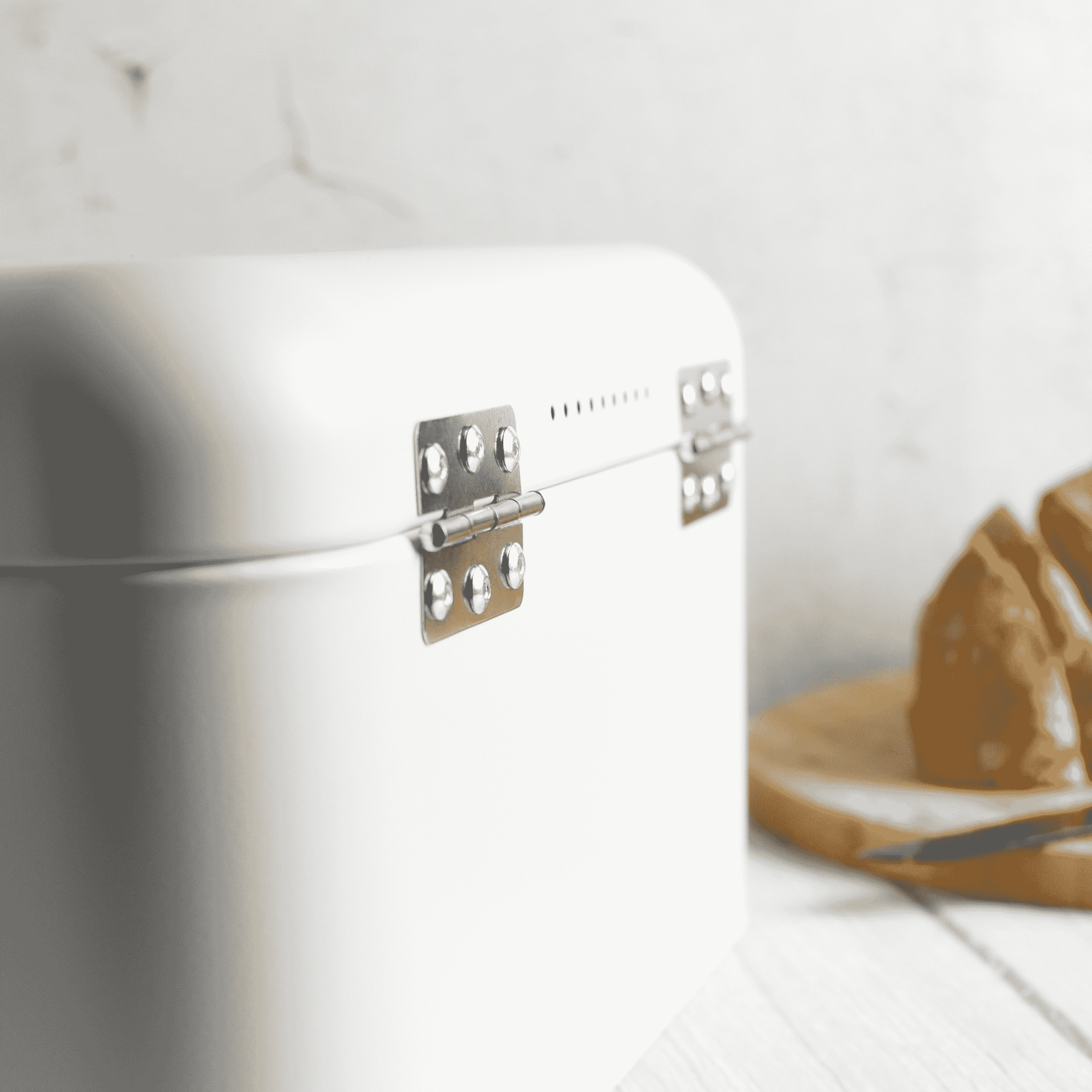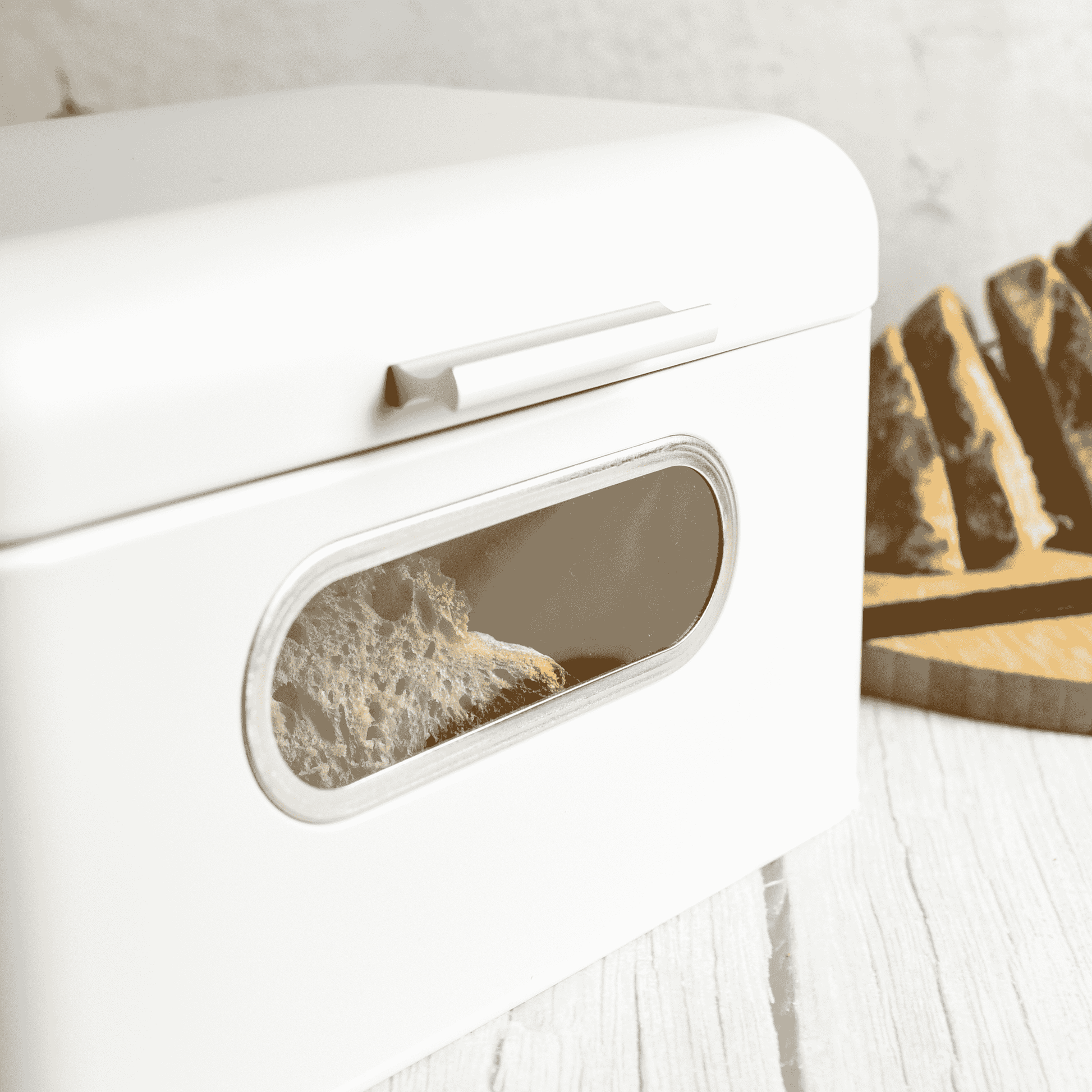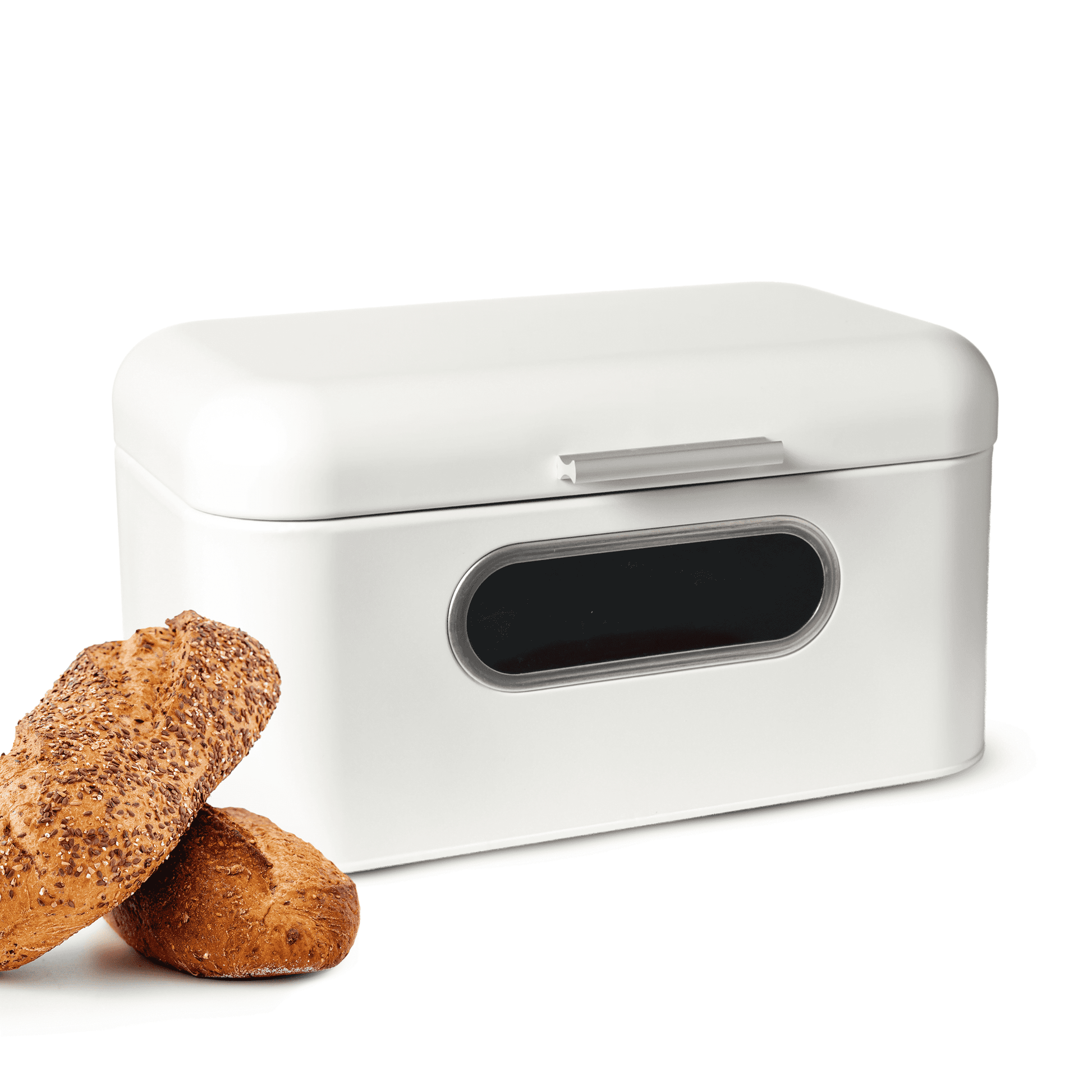 Brotkasten aus Metall mit Sichtfenster Brotkorb Aufbewahrung für Brot und Brötchen weiß mit Klappdeckel und Lüftung