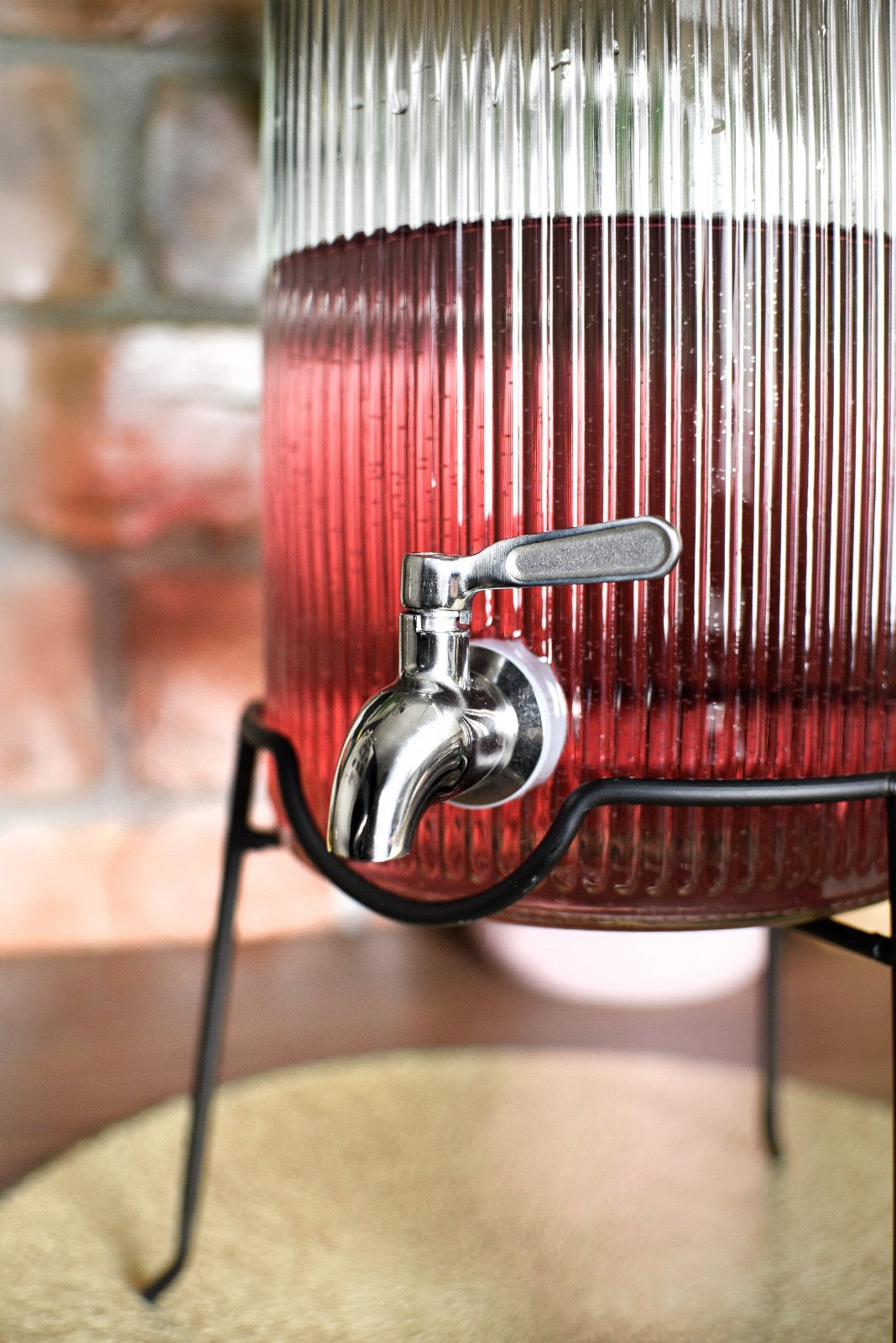 - Stilvoller Getränkespender: Dieser Getränkespender aus Glas ist nicht nur funktional, sondern auch ein Blickfang auf jeder Veranstaltung. Sein elegantes Design mit strukturierter Oberfläche und langen Linien verleiht ihm einen einzigartigen Retro-Charme