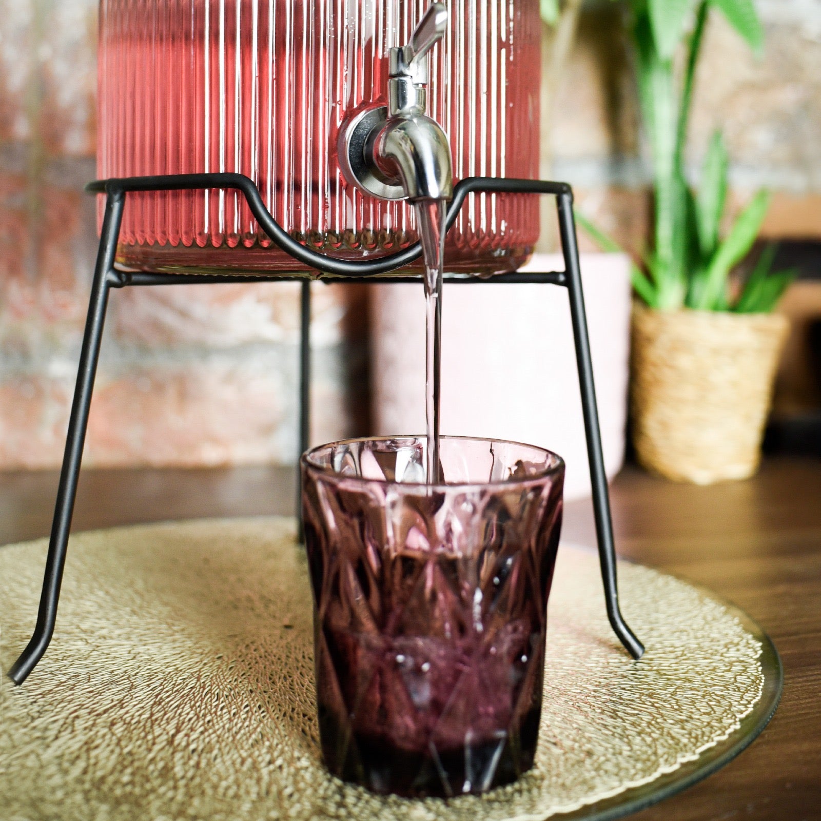 - Hochwertige Materialien: Der Getränkespender verfügt über einen Deckel und Ständer aus Metall und ist aus robustem Glas gefertigt, das langlebig ist und eine hohe Qualität garantiert. Das Retro-Design mit feiner Reliefstruktur verleiht ihm einen nostalgischen Touch
