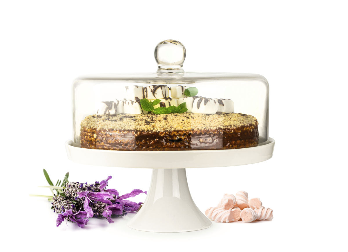 Glasglocke Kuchenglocke Käseglocke Fuß aus Porzellan Tortenplatte Kuchenplatte