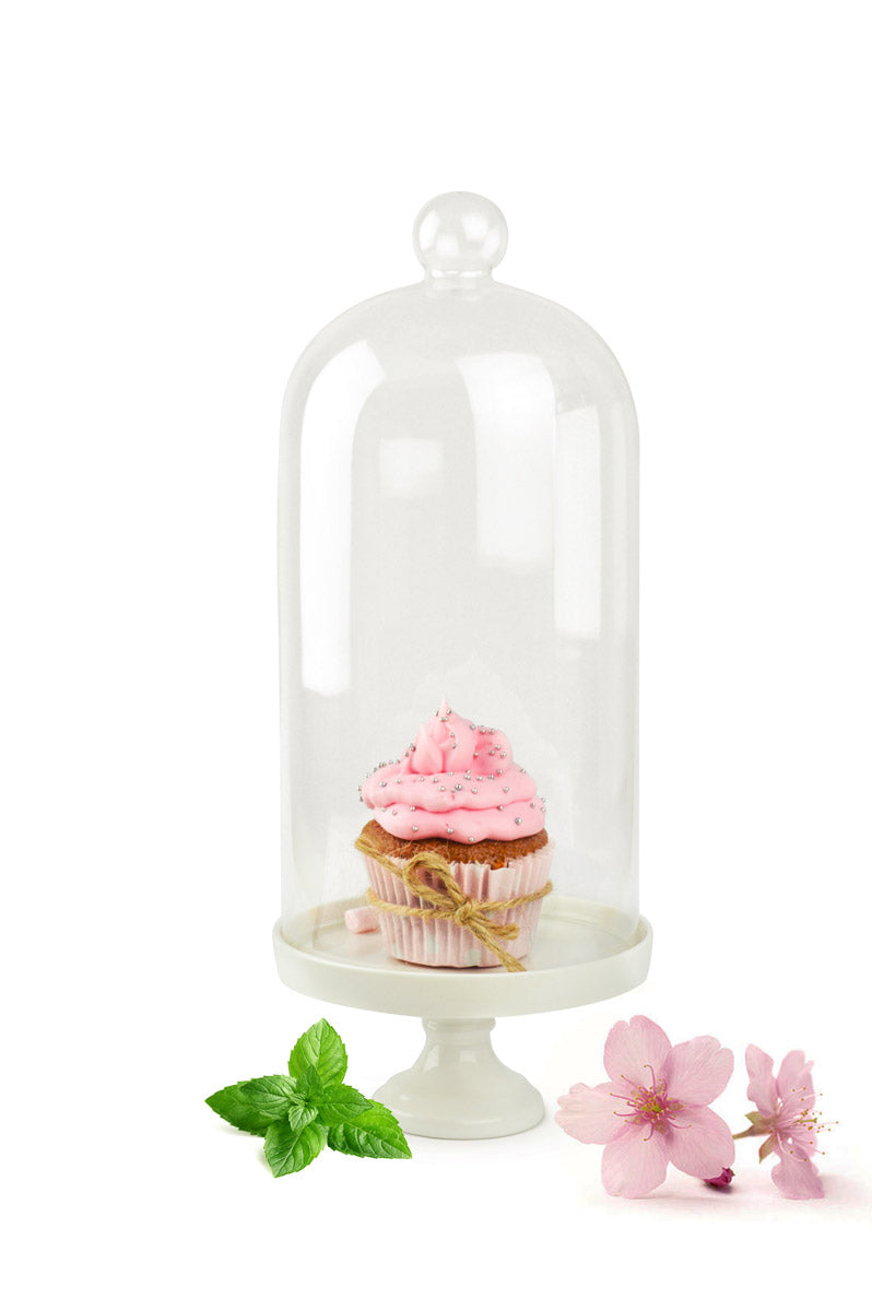 - Porzellanteller mit Fuß und Glasglocke aus Borosilikatglas